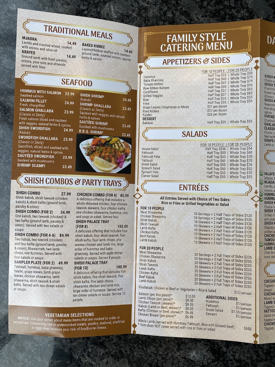 Denotes vegetarian selections. Two veggie grape leaves, two spinach pies, two falafel.