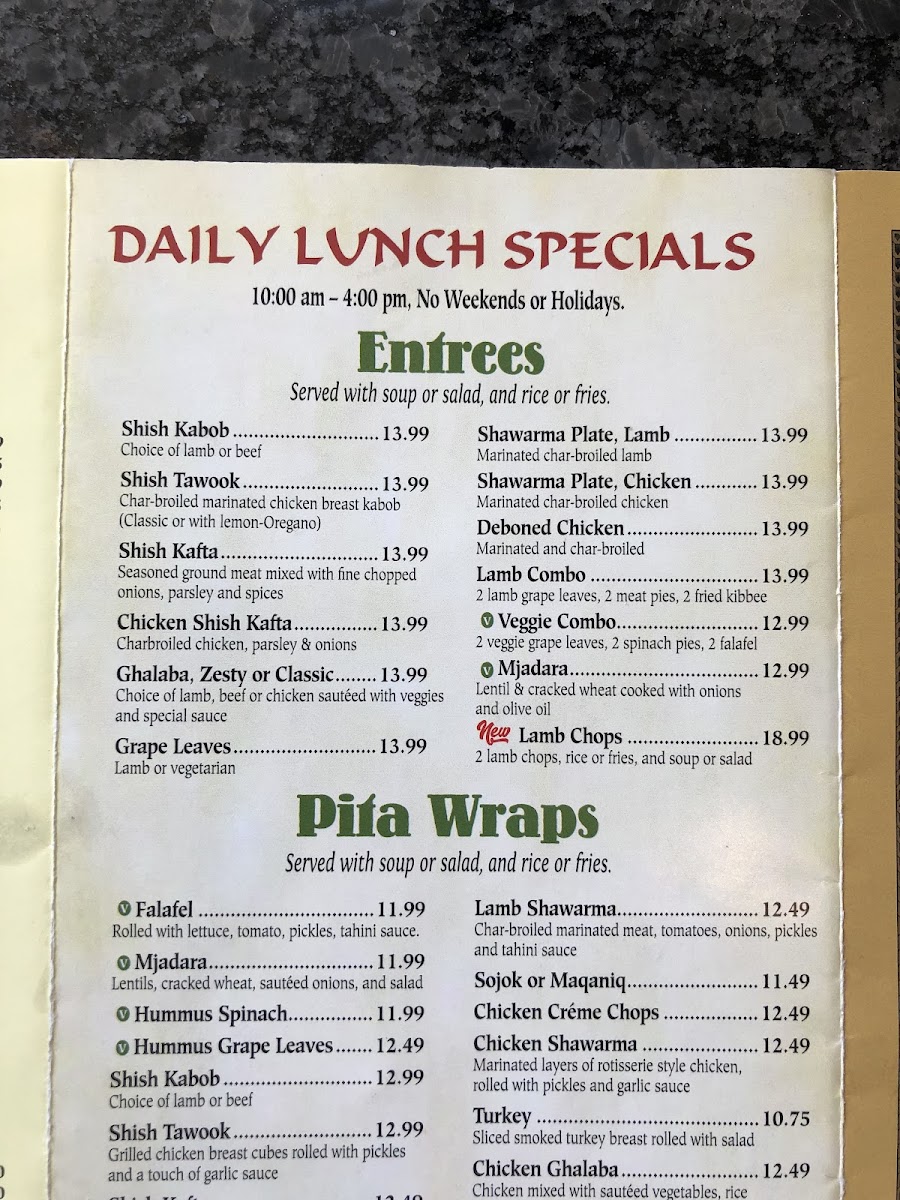 Denotes vegetarian selections. Rolled with lettuces, tomato, pickles, tahini sauce.
