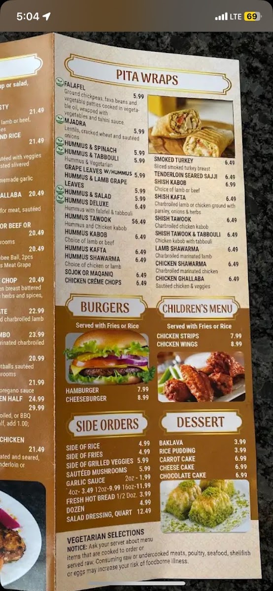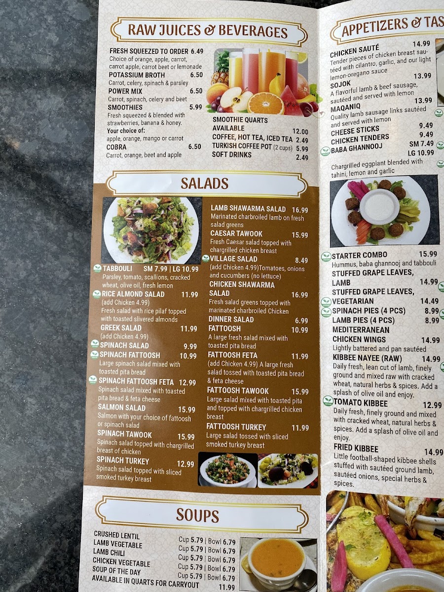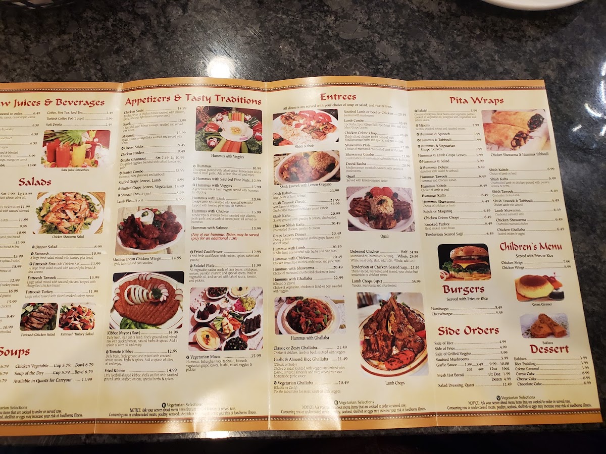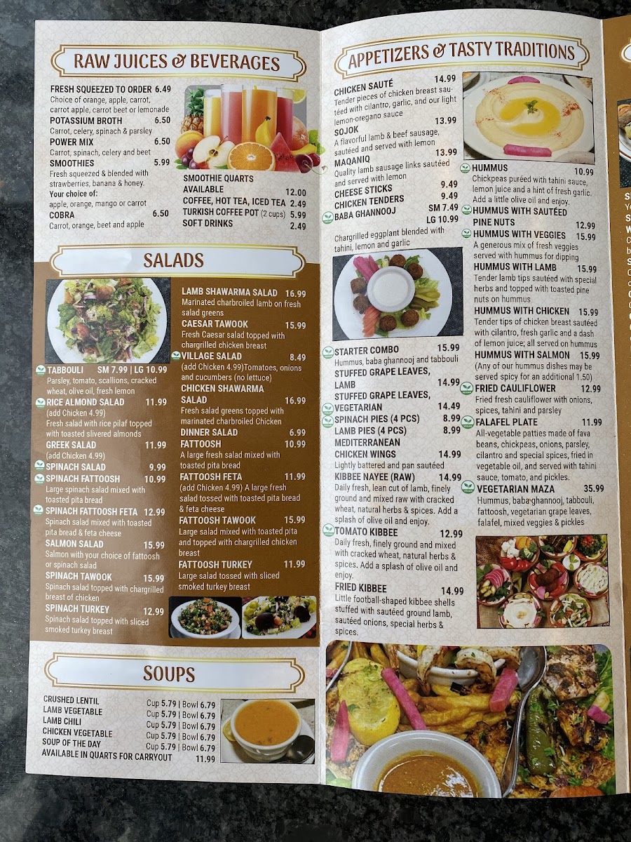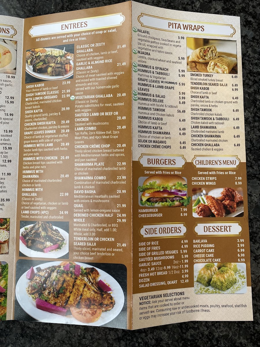 Denotes vegetarian selections. Hummus with falafel and tabbouli.